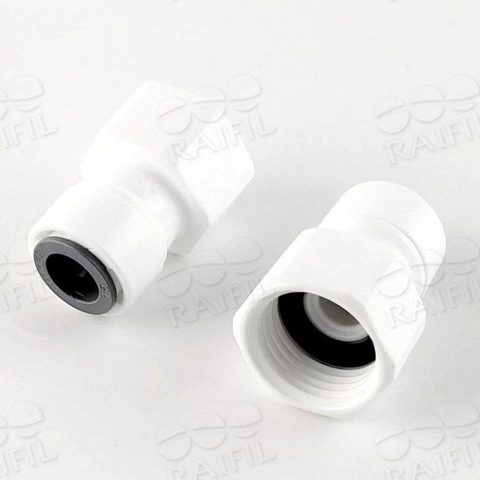 Фитинг прямой ITiger 1809-E/6FC7 (Резьба 1/2"- Трубка 3/8") - пластиковая муфта с резьбой 1/2" (внутренняя) и с отводом под трубку 3/8" (quick connect). Фитинги используются для соединения фильтроэлементов при комплектации систем очистки воды. Оснащены двумя уплотнительными резиновыми кольцами, являющимися дополнительной защитой от протечки.