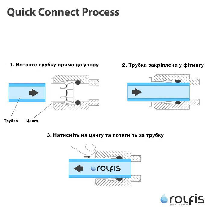Проверенная конструкция позволяет пользователям быстро и легко подключать и отключать устройства без использования каких-либо других инструментов. Применяются для питьевых проточных фильтров, а также для систем обратного осмоса. Для монтажа систем разлива воды в кофемашинах, системах туманообразования, льдогенераторах и др..