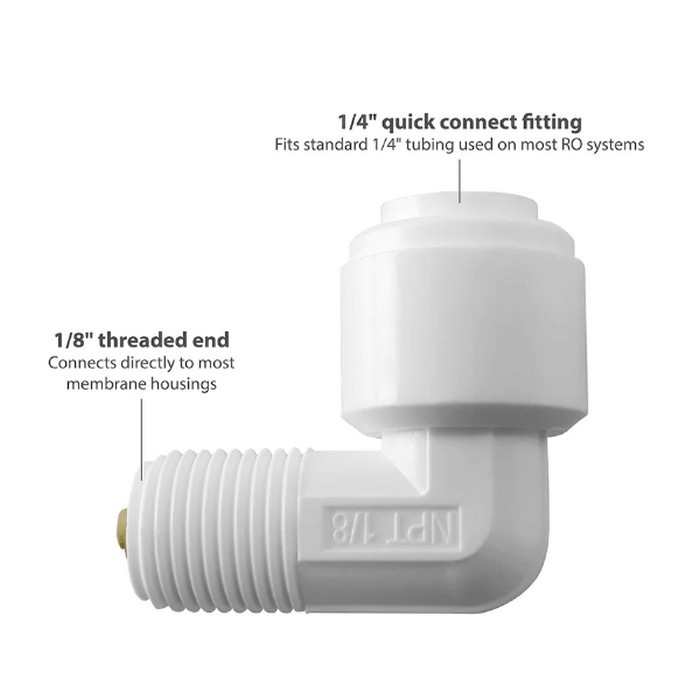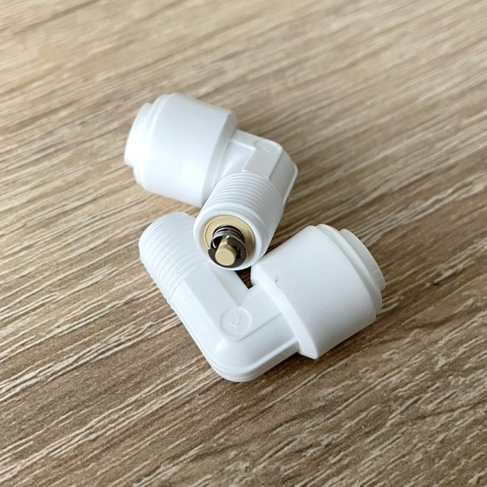 Колено с обратным клапаном Organic CV3042W-Q - угловой фитинг РН 1/8" х Трубка 1/4" для корпуса мембраны. Данный фитинг способствует тому, чтобы вода выходила из корпуса мембраны только в одно направлении. Фитинги Quick Connect с технологией Push-Fit разработаны и изготовлены для многолетней службы без утечек. Фитинги Quick Connect изготовлены из высокоэффективного термопластичного материала, на 100% не содержащего BPA.