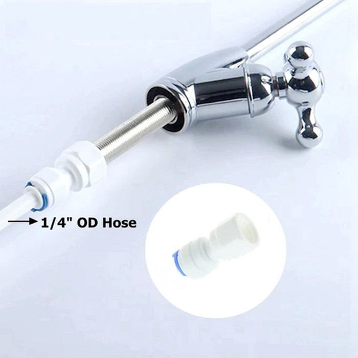 Муфта-адаптер с резьбой Kaplya KP-FA04-716 - Муфта белого цвета для подключения крана очищенной воды в фильтре обратного осмоса или проточном фильтре к трубке 1/4" - быстросьемное подключение 1/4". Фитинги Quick Connect изготовлены из высокоэффективного термопластичного материала, на 100% не содержащего BPA. Проверенная конструкция позволяет пользователям быстро и легко подключать и отключать устройства без использования каких-либо других инструментов. Применяются для питьевых проточных фильтров, а также для систем обратного осмоса. Для монтажа систем разлива воды в кофемашинах, системах туманообразования, льдогенераторах и др..