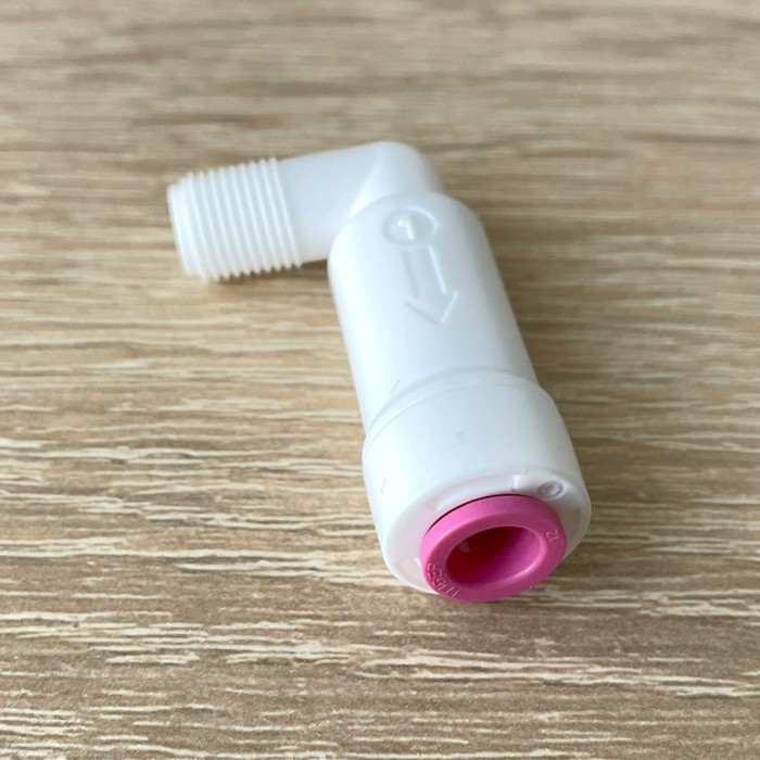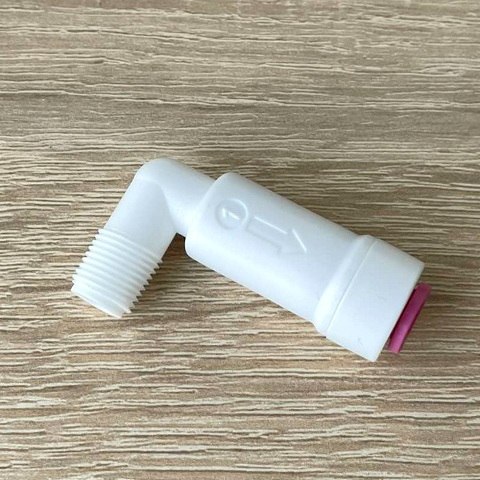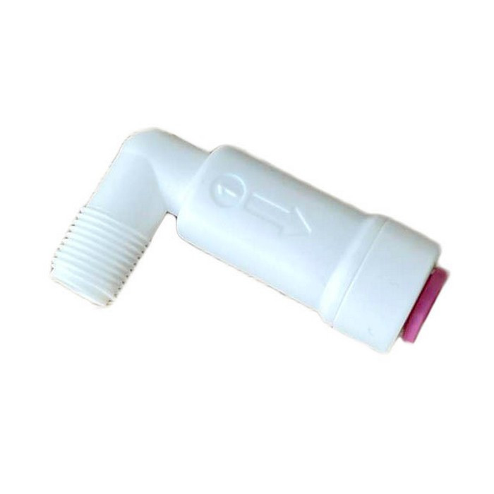 ITiger 1816-A - угловой фитинг с обратным клапаном РН 1/8" х Трубка 1/4" для корпуса мембраны. Данный фитинг способствует тому, чтобы вода выходила из корпуса мембраны только в одно направлении.