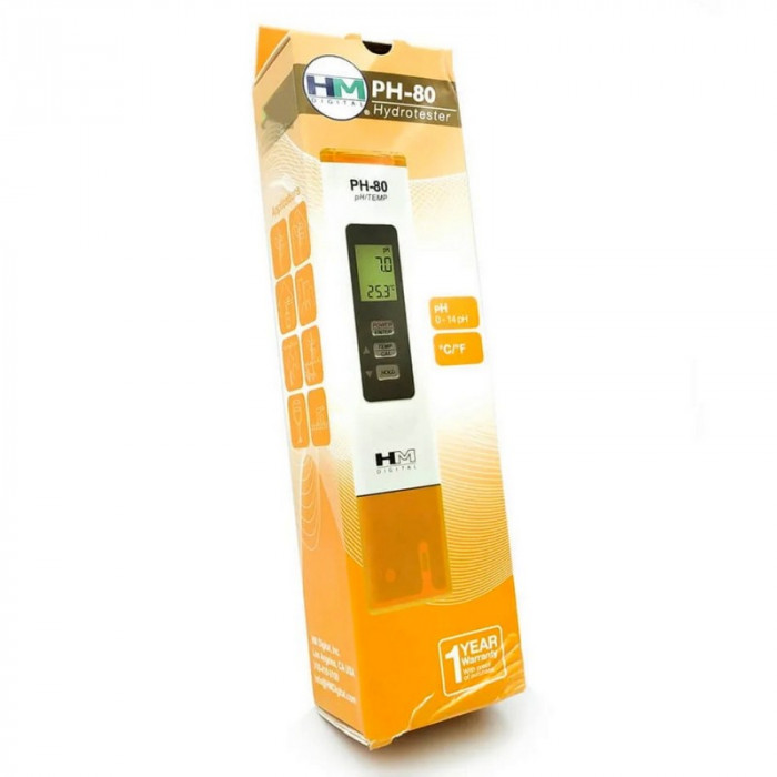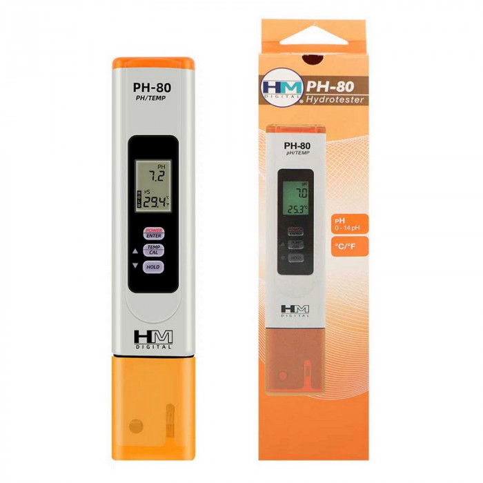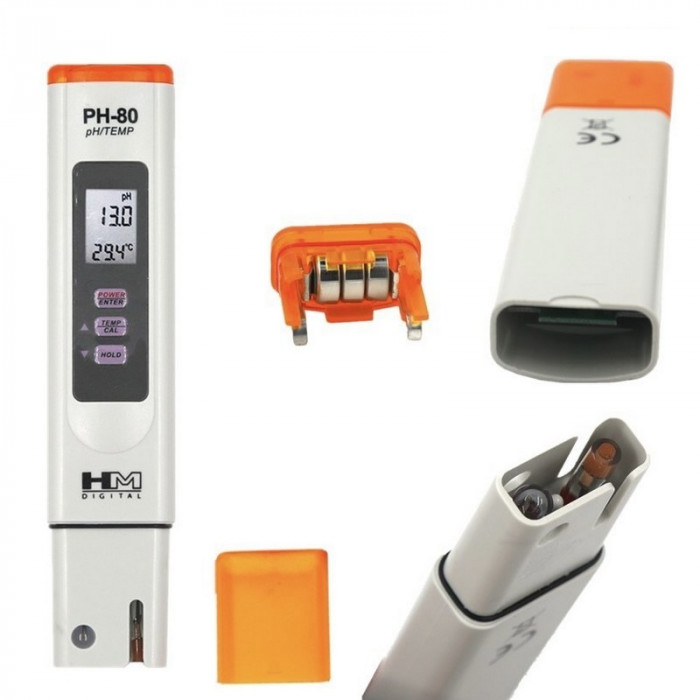 Измеритель pH метр PH-80 HM Digital - прибор для измерения уровня кислотности и температуры воды. pH-метры в основном применяются в таких областях, как: гидропоника, аквариумистика, системы водоподготовки и очистки воды, в бассейнах и СПА, а также для обслуживания нагревательных котлов, в научных лабораториях, в пищевой промышленности, ресторанном бизнесе и в клининге.