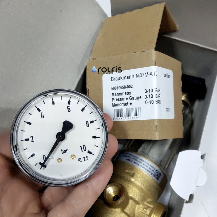 Resideo Braukmann M07M-A10 - аксиальный манометр для измерения давления в диапазоне 0-10 бар. Применение манометра позволяет контролировать давление в режиме реального времени, точно управлять настройками и регулировками редукционных узлов. Манометры также применяются для контроля давления в трубопроводе, емкости и системе циркуляции воды или газа. Конкретный тип, пределы измерения и присоединительные размеры манометра подбираются в соответствии с требованиями конкретного места применения.