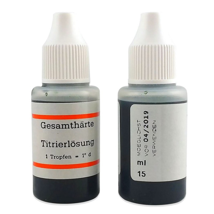Тест-капли на общую жесткость воды - в зависимости от происхождения и структуры почвы, вода может содержать разное количество калиевых солей, содержащихся в земле. Как правило, речь при этом идет о солях магния и кальция. Тест жесткости воды указывает количество растворенных солей кальция и магния.