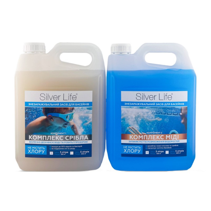 Серебряный бактерицидный комплекс SVOD Silver Life (2*3000 мл) обеспечивает надежный, длительный и качественный бактерицидный эффект. Наполнитель предназначен для эффективной защиты воды от вирусов и бактерий, препятствует размножению водорослей и «цветению» бассейна.