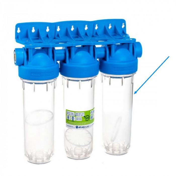 Корпус фильтра Atlas Filtri DP STANDART LB7120835 - сменная прозрачная колба для магистральных фильтров Atlas Filtri DP Mono, Duo, Trio. Колба Atlas Filtri выдерживает широкий диапазон температур, что позволяет использовать ее в фильтрах для очистки бытовой воды.