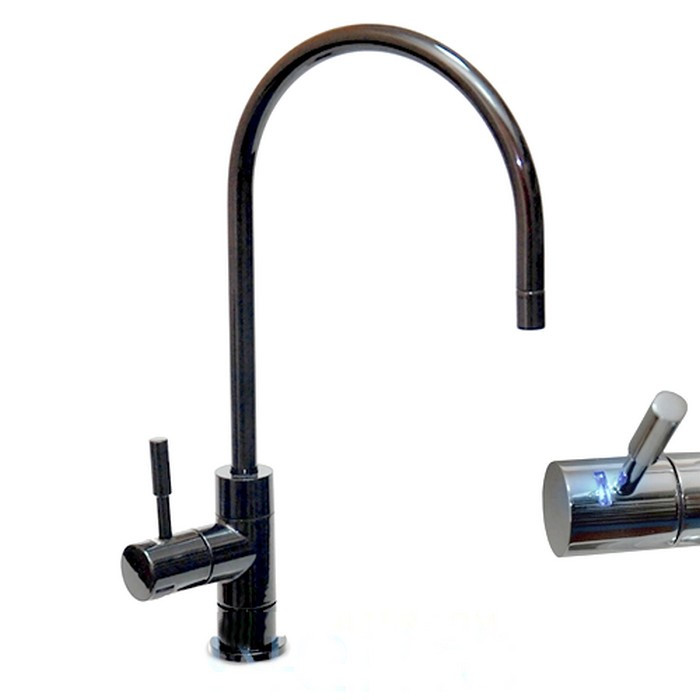При открытии крана с чистой питьевой водой загорается индикатор голубого света, по прошествии 2000 минут разбора питьевой воды или 6 месяцев с момента смены картриджей свет индикатора, при открытии крана, меняется на красный.