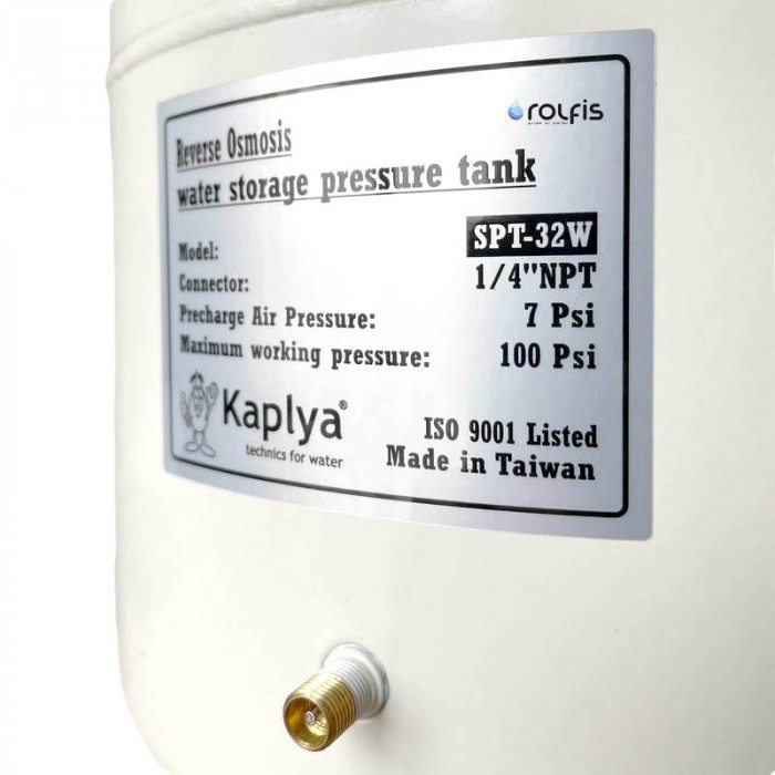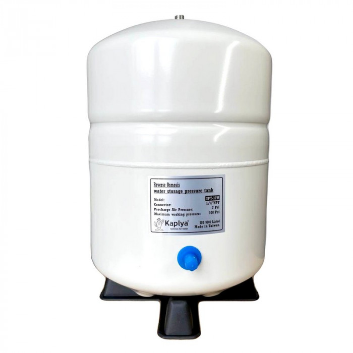 Накопительный бак Kaplya SPT-32W – накопительный бак из высококачественной стали для хранения воды в фильтрах обратного осмоса. Снаружи бак покрыт белой эмалью, внутри находится пищевой пластик, комплектуется пластиковой подставкой. Гидроаккумулятор SPT-32W накапливает, хранит и подает под давлением в питьевой кран ранее фильтрованную воду.