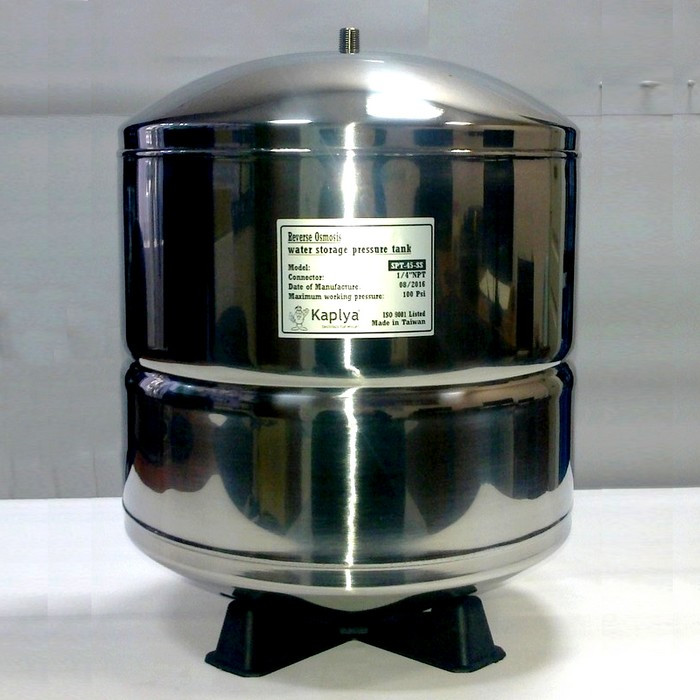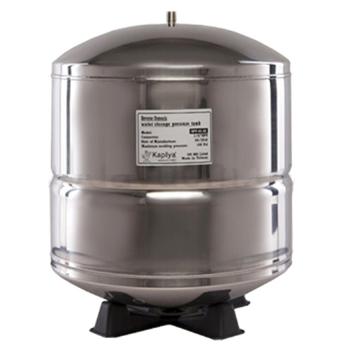Накопительный бак Kaplya SPT-45-SS - накопительный бак объемом 4,5 галлон. Общий объем бака составляет 15 л, а рабочий объем около 11-12 л. Бак выполнен из нержавеющей стали и имеет качественный сварной шов. Ниппель подключения также изготовлен из нержавеющей стали.