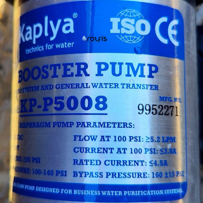 Насос для обратного осмоса Kaplya KP-P5008 - это новая модель бустерного насоса повышенной производительности от торговой марки Kaplya, предназначенного для увеличения давления воды. Данный насос можно использовать в системах обратного осмоса без накопительного бака.