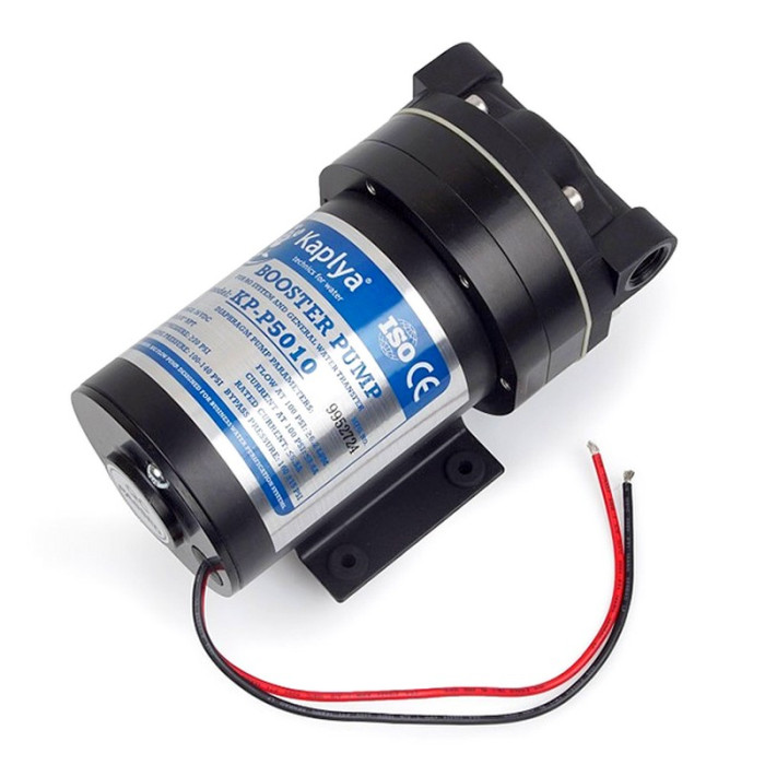 Насос Kaplya KP-P5010 подойдет для систем обратного осмоса высокой производительности до 1000 GPD. Насос имеет высокую мощность, 6 клапанов. Открытый поток 8,6 л/мин. При нагрузке 100 PSI: поток 6,2 л/мин. Если в источнике подачи воды низкое давление, то система обратного осмоса будет работать некорректно или вовсе не будет подаваться чистая вода на накопительный бак и кран на мойке, соответственно!