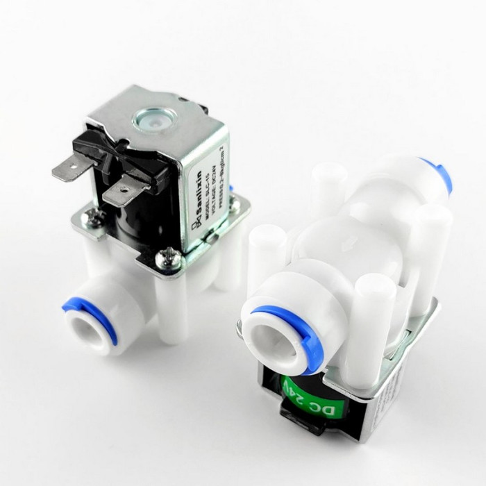Электромагнитный клапан ESV-3/8"-(12V)-6W состоит из корпуса, соленоида (электромагнита) с сердечником, на котором установлен диск или поршень, регулирующий поток. Клапан открывается одновременно с каждым включением помпы.