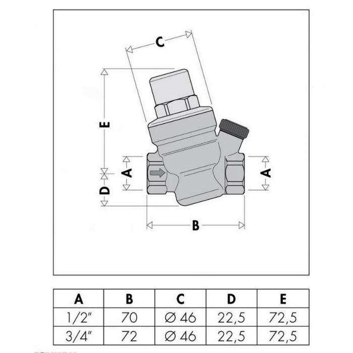 Благодаря регулятору в редукторе Caleffi 3/4" выходное давление можно выставить до необходимого значения от 1 до 6 бар. Заводская настройка - 3 бар.