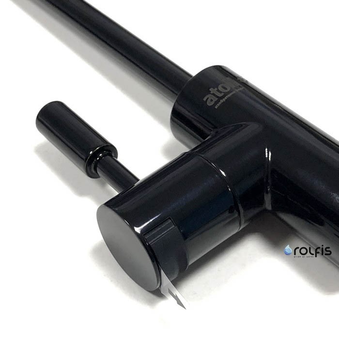 ATOLL A-888-BB (Bright Black) - стильный кран питьевой хромированный, керамический, люкс, цвет Bright Black-Чёрный, вентиль — рычаг. Питьевой кран — необходимый элемент любой бытовой системы очистки воды. Врезается в кухонную мойку или столешницу и служит для получения чистой питьевой воды, независимо от общего потока воды, используемой в хозяйственных целях.