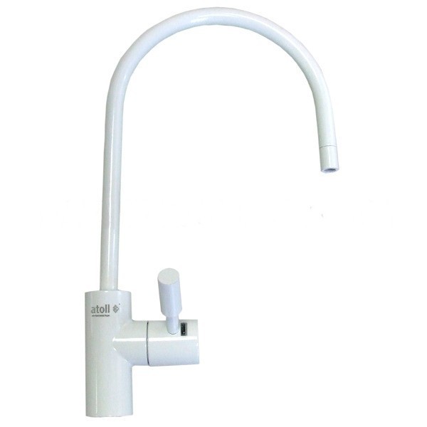 ATOLL A-888-WE (White) - стильный кран питьевой хромированный, керамический, люкс, цвет White - белый, вентиль — рычаг.