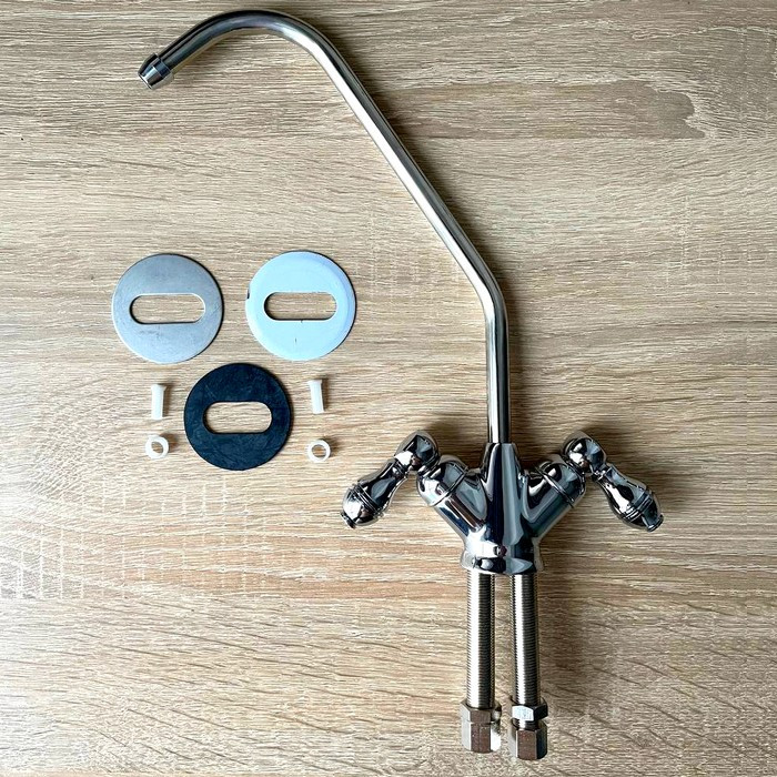Kaplya DFCH4-1-C - двойной кран с керамическим клапаном. Данный кран необходим, если у вас установлена система обратного осмоса с минерализацией. Кран Капля DFCH4-1-C используется в системах обратного осмоса для возможности разделения очищенной воды на воду до минерализатора и после него.