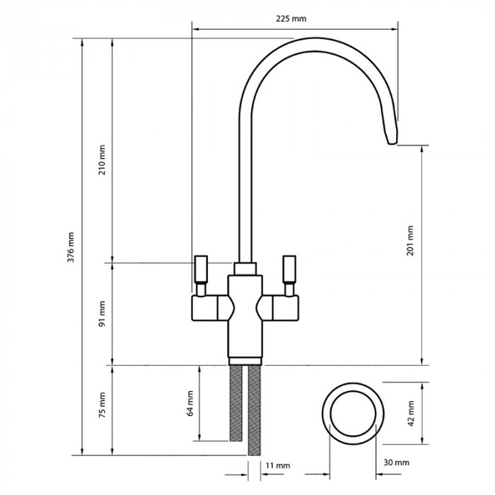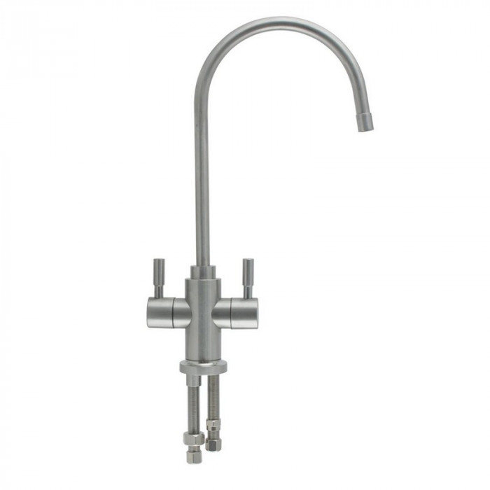 Кран Raifil I-A017 - двойной кран матового цвета (сатин нержавейка). Кран Райфил монтируется на кухонную мойку для получения очищенной и минерализированной воды после системы обратного осмоса. Матовый кран для фильтра очиктси воды обладает отличным свойством - на его поверхности не остаются отпечатки пальцев при его эксплуатации, что устранит надобность постоянно натирать поверхность крана!