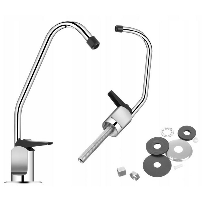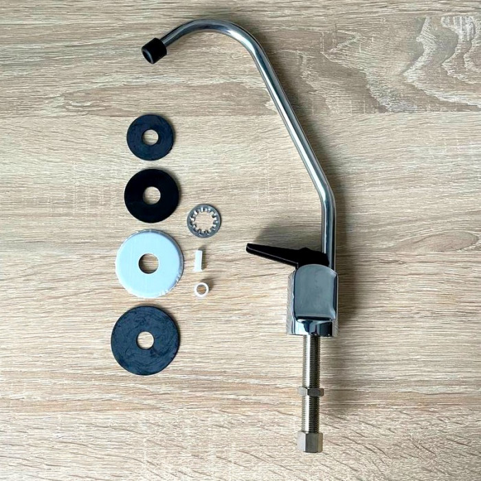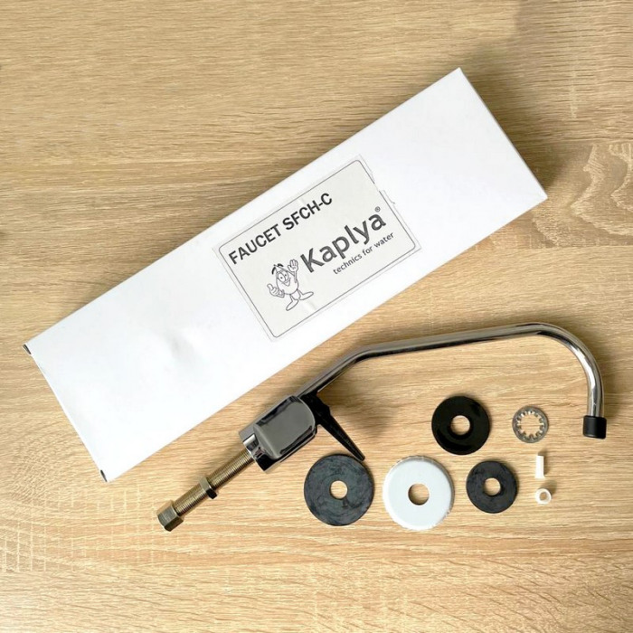 Сама конструкция краника Kaplya (Капля) SFCH-C отличается прочностью и устойчивостью к износу, не допускается образование коррозии и ржавчины, а дополнительное хромированное покрытие обеспечит сохранность блеска и привлекательность поверхности крана. Такая универсальная модель Kaplya SFCH-C производства известной тайваньской компании обеспечит эффективное использование на разных кухнях по стилю и размеру. В комплект которой входят все комплектующие, необходимые для соединения крана с трубкой фильтра.