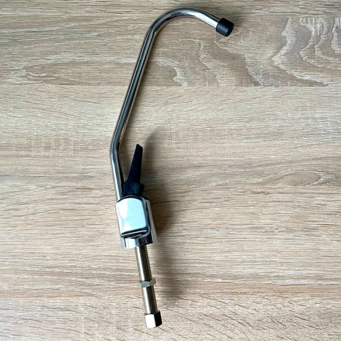 Кран Kaplya SFCH-C - одинарный кран с нажимной ручкой для питьевой воды. Подходит для любого проточного питьевого фильтра, а также для системы обратного осмоса. Доступный по цене одинарный кран Kaplya SFCH-C выполнен из латуни и дополнительно покрывается хромом. Кран нажимной Kaplya SFCH-C имеет клапан для регулировки подачи воды - имеет три позиции(вверх - полностью открывает кран; вниз - порционно подает воду, промежуточное положение - кран закрыт).