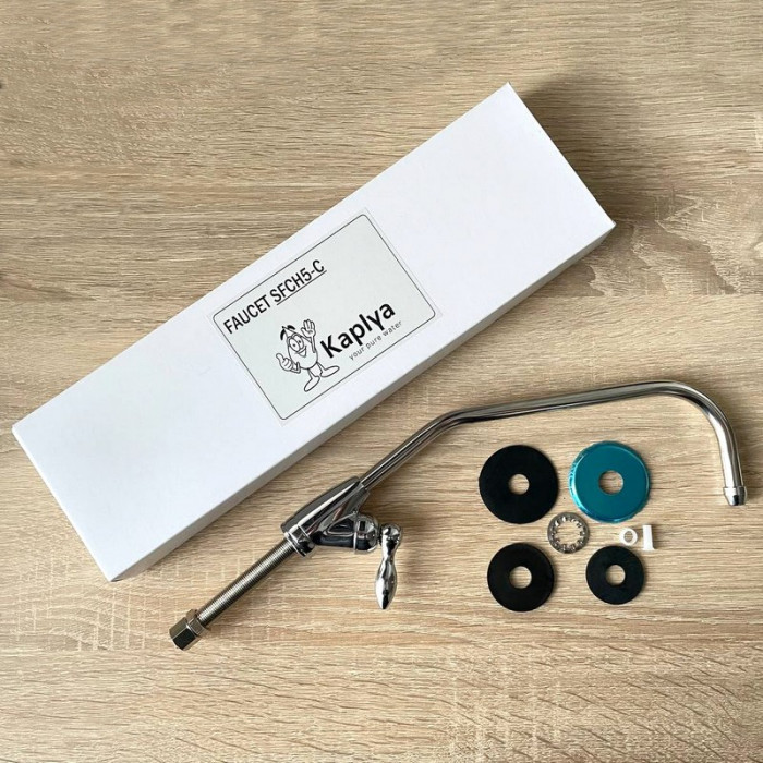 Кран одинарный Kaplya SFCH5-C - одинарный кран в стандартном стиле для питьевой воды. Подходит для любого проточного питьевого фильтра, а также для системы обратного осмоса. Кран одинарный Kaplya имеет керамический клапан.