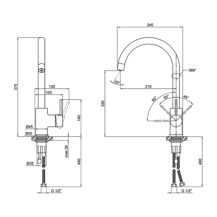 Комплектация: Смеситель, паспорт, крепление, гибкая подводка.