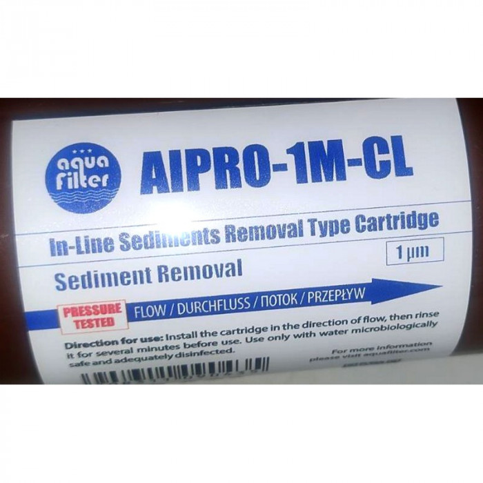 Aquafilter AIPRO-1M-AQ - линейный механический картридж с полипропиленовым волокном. Микронаж - 1 µm. Очищает воду от песка, ржавчину и других механических примесей.