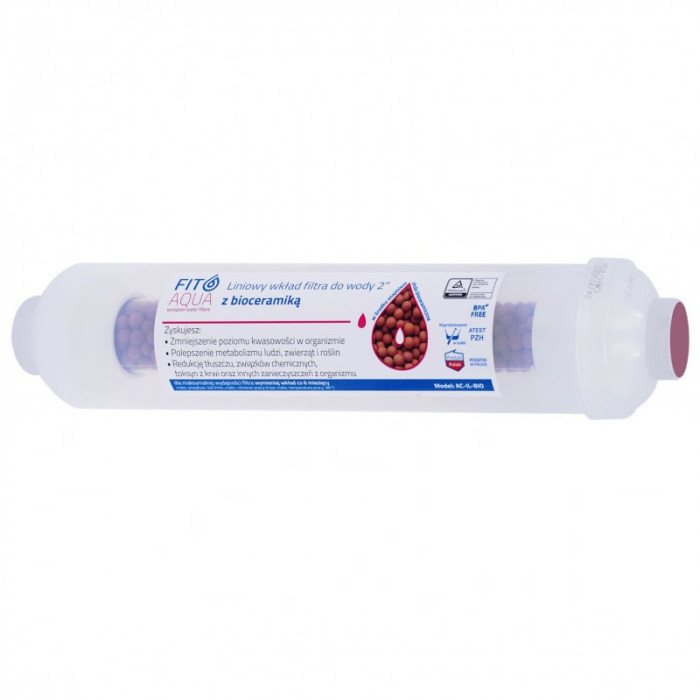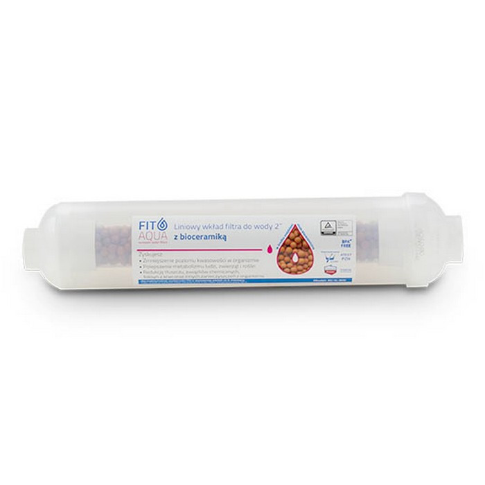 Биокерамический картридж Fitaqua AC-IL-BIO - биокерамический картридж для системы обратного осмоса. Используется, в основном, в качестве седьмой ступени фильтрации. Картридж Fitaqua BIO 1-L содержит керамические гранулы, которые герметично запаянные в трубку. Керамические шарики изготовлены из смеси глины и турмалина.