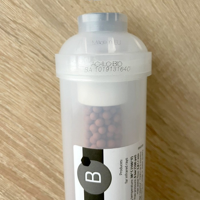 Внутри данного картриджа находятся керамические шарики из природного минерального турмалина, который вызывает резонанс среди воды и органических молекул. FIR-лучи активируют обмен веществ, устраняют отрицательные ионы, обеспечивая естественные способности к повышению иммунитета организма.