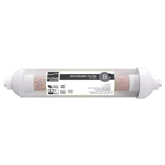 Корпус биокерамического картриджа PLAT-IВIO изготовлен из качественного пищевого пластика. Биокерамический картридж Platinum Wasser можно использовать во всех системах обратного осмоса различных производителей.