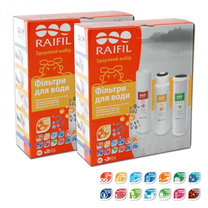 Два комплекта картриджей Raifil Resin Trio (Умягчение) - два набора из трех сменных картриджа для проточного фильтр Raifil Novo 5 SOFT. Картриджи в данном комплекте идут стандартного размера 10х2,5", поэтому его можно использовать для проточных фильтров любых торговых марок. Комплект сменных картриджей Raifil умягчение предназначен для очистки воды с высокой жесткостью. Предотвращает образование накипи. Подходит также для предварительной очистки воды перед мембраной обратного осмоса.