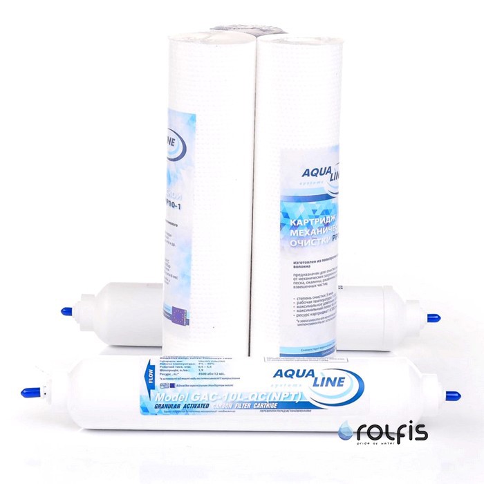 В годовой комплект Aqualine RO-6 входят такие картриджи: