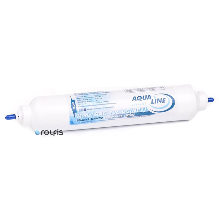 - угольный постфильтр Aqualine GAC-10L-QC - линейный фильтрующий модуль для коррекции вкусов свойств очищенной воды;