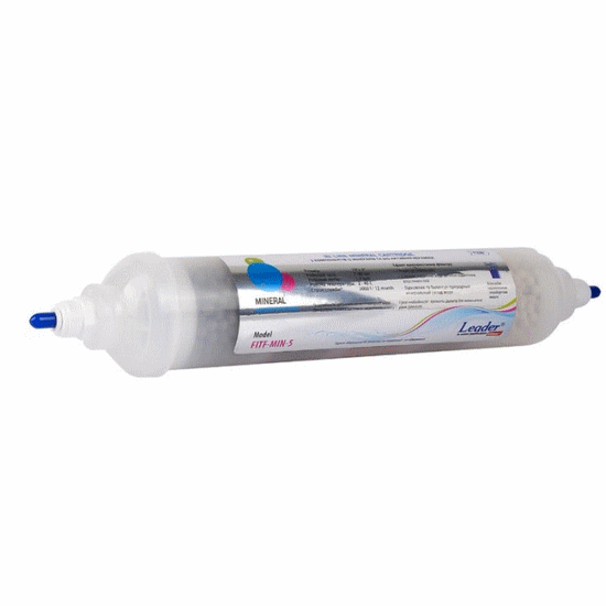 Leader In-line MIN-10L-QC - шестая ступень в системе обратного осмоса торговой марки Leader, которая способствует обогащению уже очищенной воды необходимым количественным и качественным минеральным составом воды.