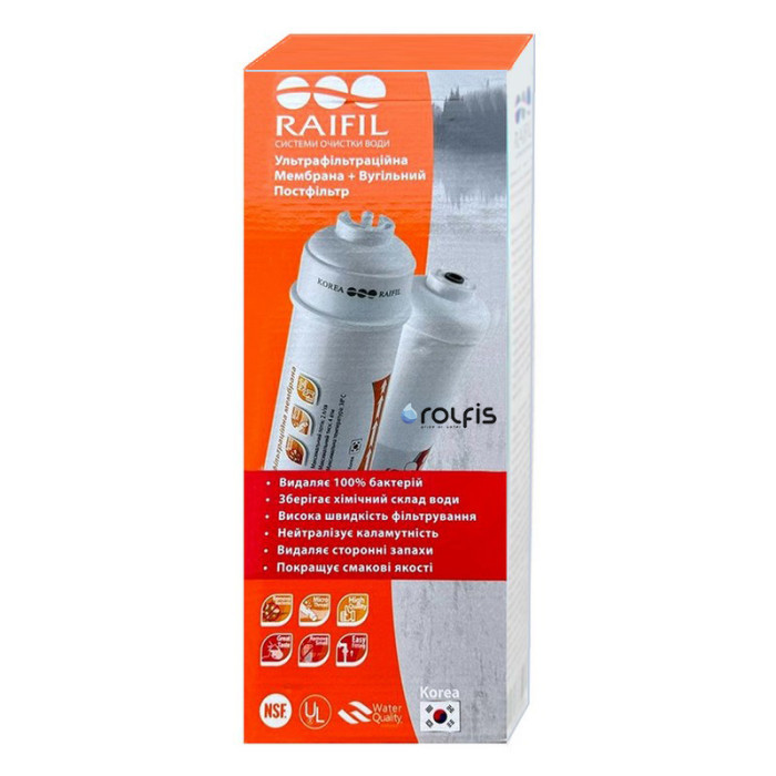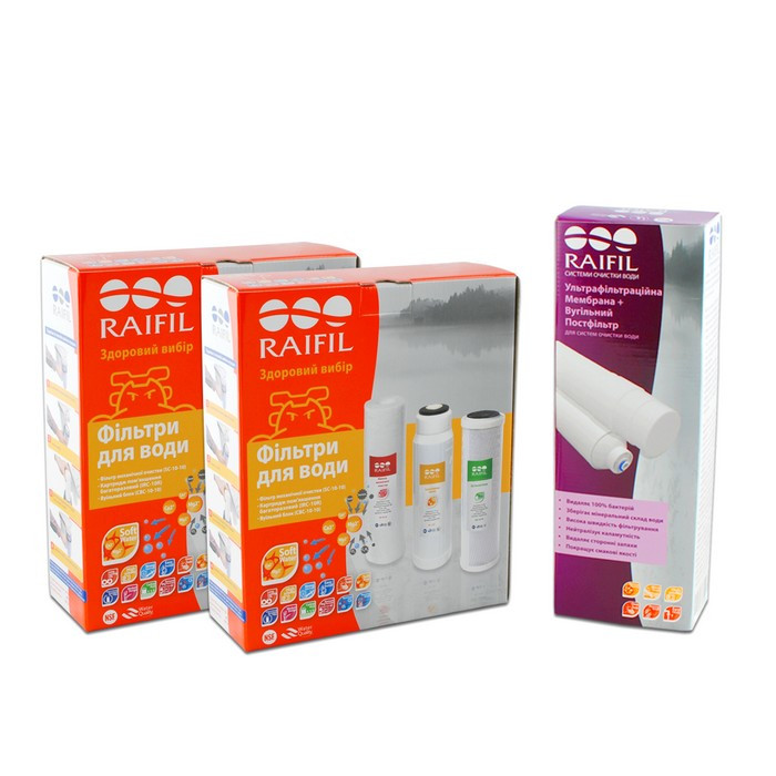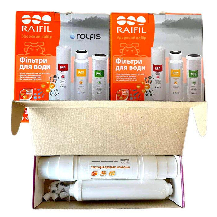 Годовой комплект сменных картриджей Raifil NOVO 5 SOFT мембраны для поточного фильтра под мойку 5-ти стадийного с UF мембраной NOVO5 SOFT. Годовой комплект картриджей Raifil состоит из двух комплектов нижних картриджей, одного постфильтра с угловым фитингом и тройником и минерализатора с двумя угловыми фитингами.