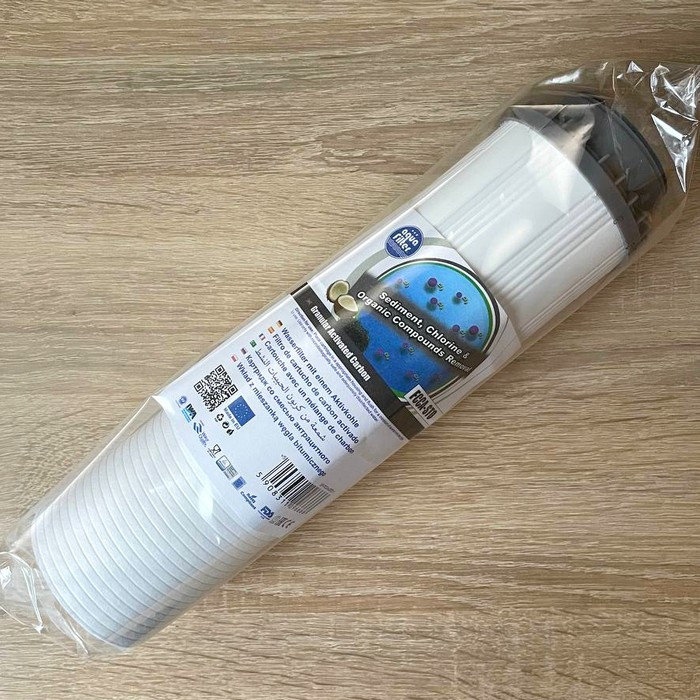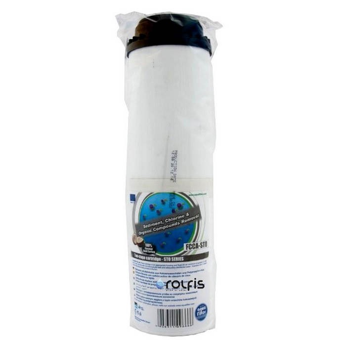 Aquafilter FCCA-STO - комбинированный картридж для очистки воды от органических примесей и активного хлора, благодаря высококачественному угля, а полипропиленовая часть картриджа задерживает механические частички (песок, окалина).