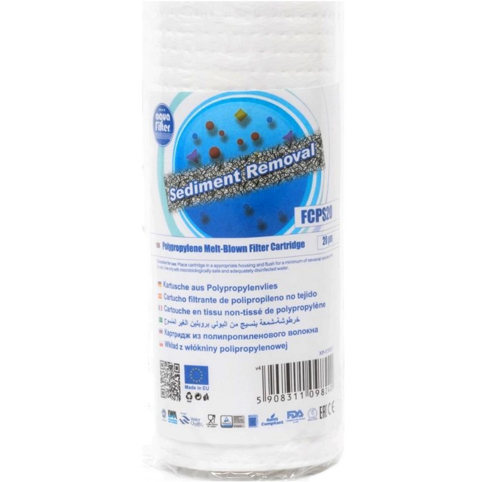 Aquafilter FCPS20 - сменный полипропиленовый фильтр от механических примесей с микронажем 20 мкм;