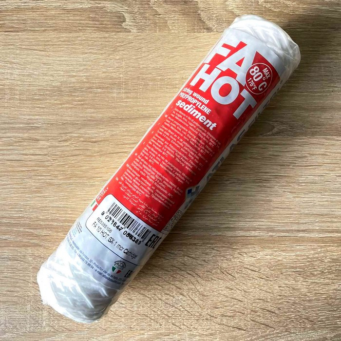 Atlas Filtri FA HOT 10" SX 1 mcr RE5385106 - механический картридж для горячей воды (до 80°С). Изготовлен из полипропиленовой нити с центральным стержнем из усиленного полипропилена. Это картридж из полипропиленовой нити с степенью фильтрации - 1 микрон. (Есть также картриджи со степенью фильтрации 5, 10 и 25 мкм). Очищает воду от таких механических примесей, как песок, ржавчина, ил, осадок и др.