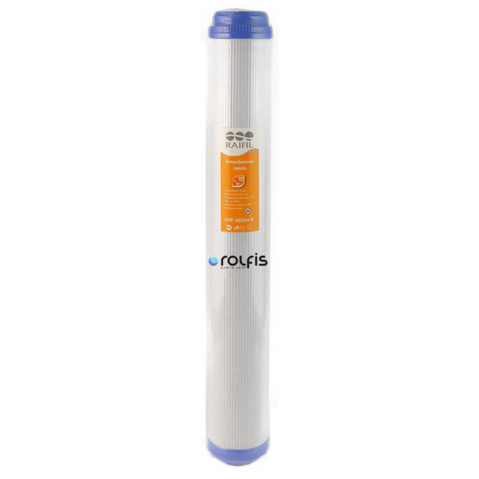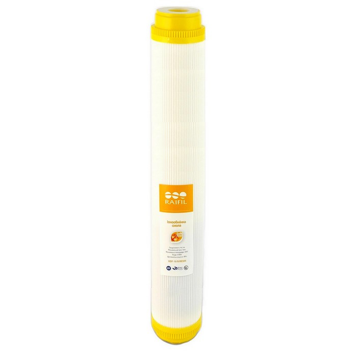 Raifil UDF-20 R/RESIN - картридж для умягчения жесткой воды. Фильтрующий материал - катионит пищевого класса. Благодаря длительному контакту со смолой, из воды удаляются соли жесткости. Тем самым, предотвращает образование накипи в чайнике и на других нагревательных элементах бытовых приборов.