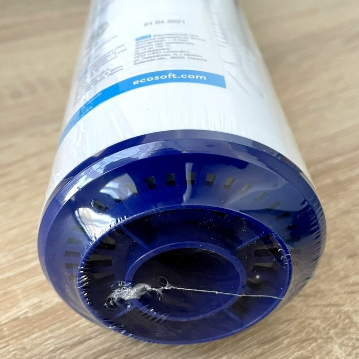 Картридж Экософт Экомикс Д37 для комплексной очистки имеет стандартный размер 10х2,5" и подходит под все стандартные колбы 10". Не стоит превышать рекомендуемую скорость фильтрации, это может привести к ухудшению качества очистки воды.