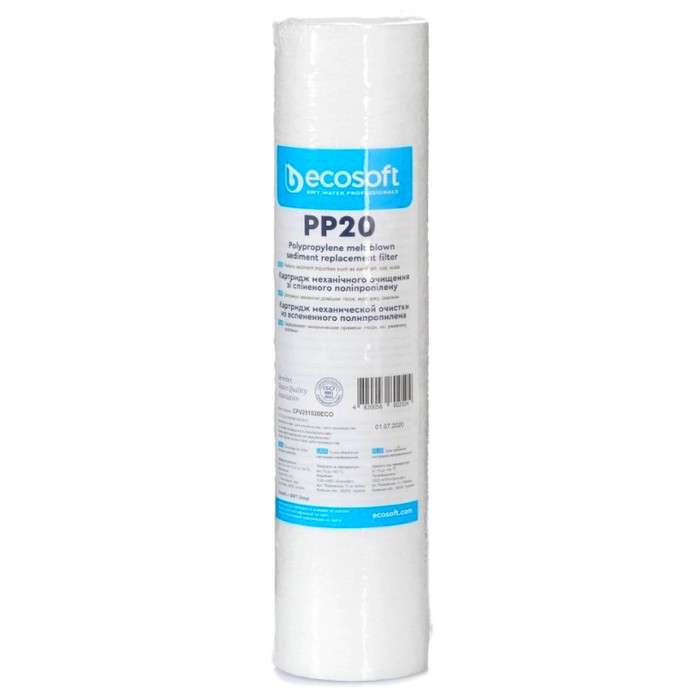 Картридж Ecosoft 2,5"x10" 20 мкм имеет высокую эффективность очистки и стабильные характеристики по удержанию частиц. Для производства механического картриджа Экософт используется европейский полипропилен с высокой текучестью.