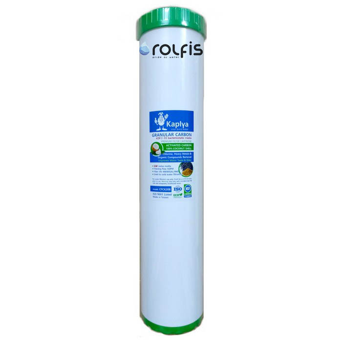 Картридж Kaplya CFCK20B – сменный картридж из из 100% кокосового гранулированного активированного угля c загрузкой KDF-55. Предназначен для очистки холодной воды, а загрузка KDF-55 - применяется для глубокой химической очистки воды от хлора и ионов металлов, а также бактерицидные свойства материала. В процессе очистки воды KDF выступает катализатором идущих в фильтрующей среде химических процессов.