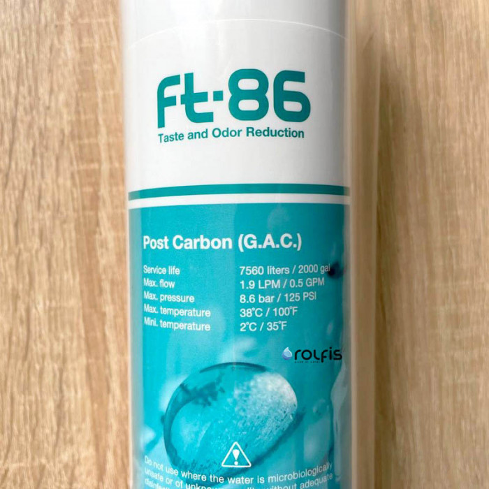 Угольный фильтр FT-86 используется в качестве последней ступени фильтрации. Вода на него поступает после накопительного бака непосредственно перед подачей воды потребителю.