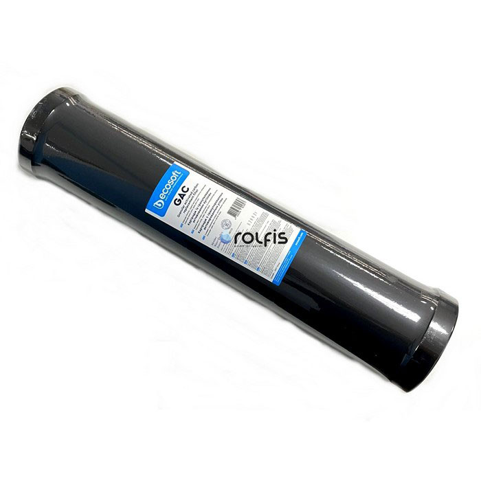 Картридж с гранулированным активированным углем Ecosoft ВВ20 имеет увеличенный ресурс по хлору до 60 000 литров. После установки нового картриджа слейте не менее 10 литров отфильтрованной воды в канализацию.