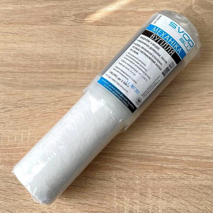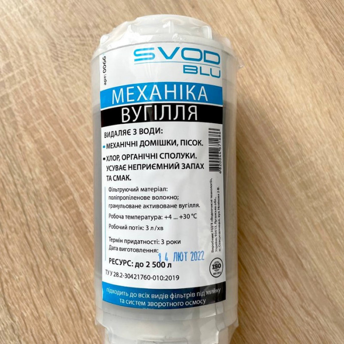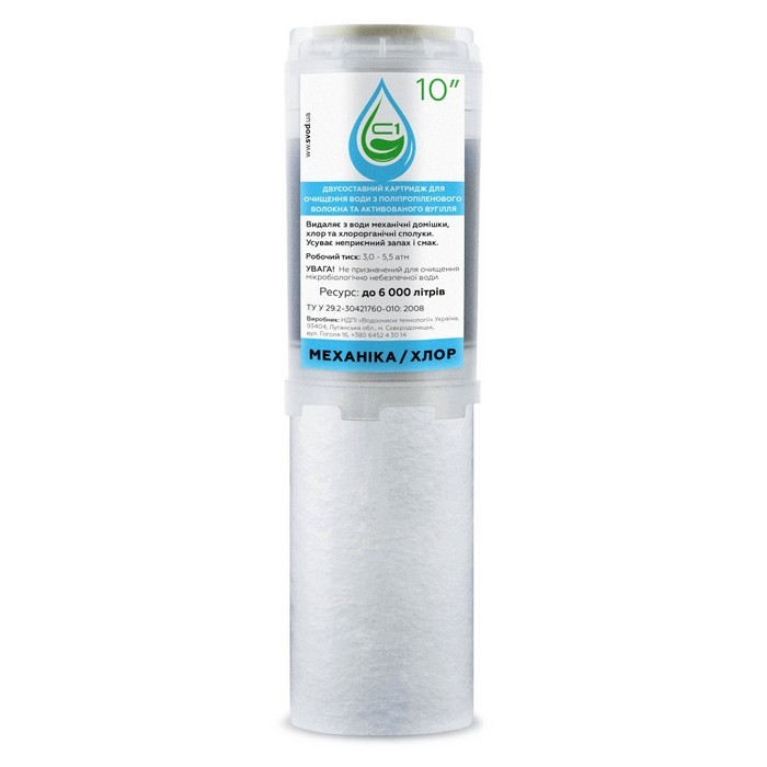 Сменный картридж СВОД С1 Механика/Уголь - Картридж для воды задерживает механические примеси, снижает содержание хлора и органических веществ. Улучшает цвет, запах и вкус воды. Фильтрующий материал: вспененный полипропилен 10 мкм, гранулированный активированный уголь. Используется в качестве одной из ступеней очистки в фильтрах для воды проточного типа.