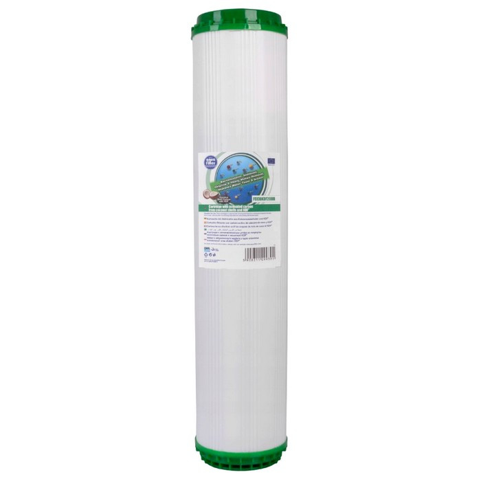 Угольный картридж Aquafilter FCCBKDF20BB (Big Blue) изготовлен из гранулированного активированного угля скорлупы кокосового ореха и засыпки KDF. Гранулированный активированный уголь удаляет органические вещества, хлор, фенол. KDF снижает содержание сероводорода, железа и тяжелых металлов. KDF препятствует росту бактерий, при этом продлевая срок службы картриджа. Улучшается вкус и запах питьевой воды.