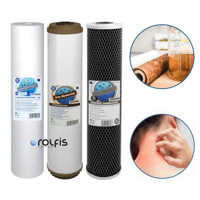 Aquafilter "Хлор + Железо" Big Blue 20 - комплект из трех сменных картриджей типоразмером Big Blue 20 для тройного магистрального фильтра Aquafilter HHBB20B. Картриджи эффективно очищают воду от механических примесей, железа и хлора.