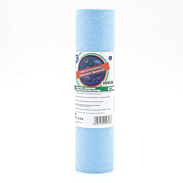 Полипропиленовый антибактериальный картридж, очищающий воду от песка и других грубых примесей, скопившегося в трубах налета и частиц пыли. Предотвращает образование бактерий. Изготовлено с использованием технологии BACINIX Nanosilver, используемой в медицинской промышленности. Данная технология способствует уничтожению бактерий, а также подавляет образование микроорганизмов, грибков и плесени.