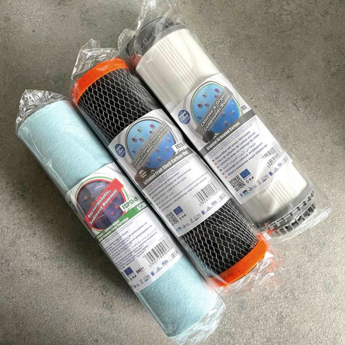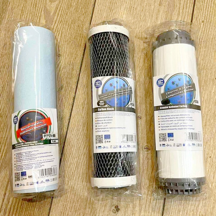Комплект картриджей Aquafilter "Chlor Antibacterial" - комплект из трех сменных картриджей (антибактериальный механический) для проточных фильтров и для систем обратного осмоса. Картриджи эффективно очищают воду от механических примесей и хлора.