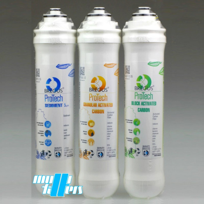 Комплект картриджей Bregus ProTech - набор из трех картриджей для предфильтрации в системах обратного осмоса Bregus. Каждый картридж заключен в цельный моноблок и имеет более высокую эффективность, чем классический картридж.
