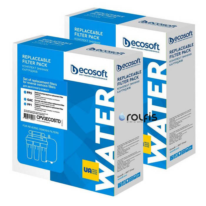 Два комплекта картриджей Ecosoft CPV3ECOSTD необходимы для подготовки воды перед мембранным элементом в системе обратного осмоса. Использование картриджей позволит снизить содержание в водопроводной воде примесей, которые сокращают срок службы мембраны (механические примеси, хлор и хлорорганические соединения).